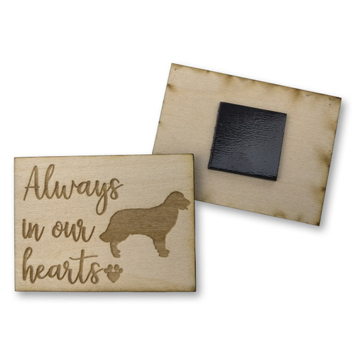 - Golden Retriever Always in our Hearts refrigerator magnet is made of 1/8" thick basswood