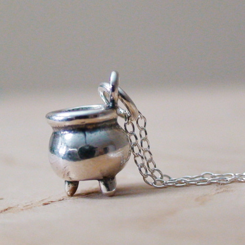Cauldron charm and cable chain are made of .925 sterling silver (stamped 925). The charm is three dimensional (3D).