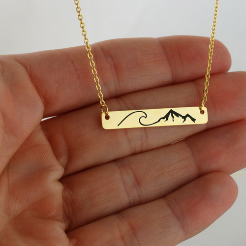 - Ocean Wave and Mountains Horizontal Bar Necklace